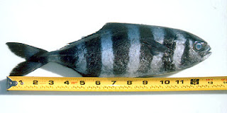 (A small slender marine fish that often swims in company with larger fish, especially sharks)
